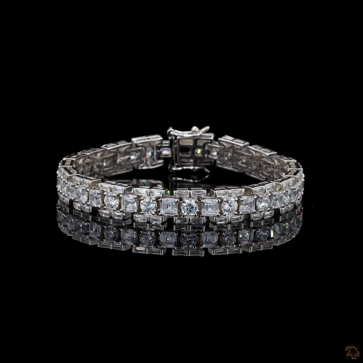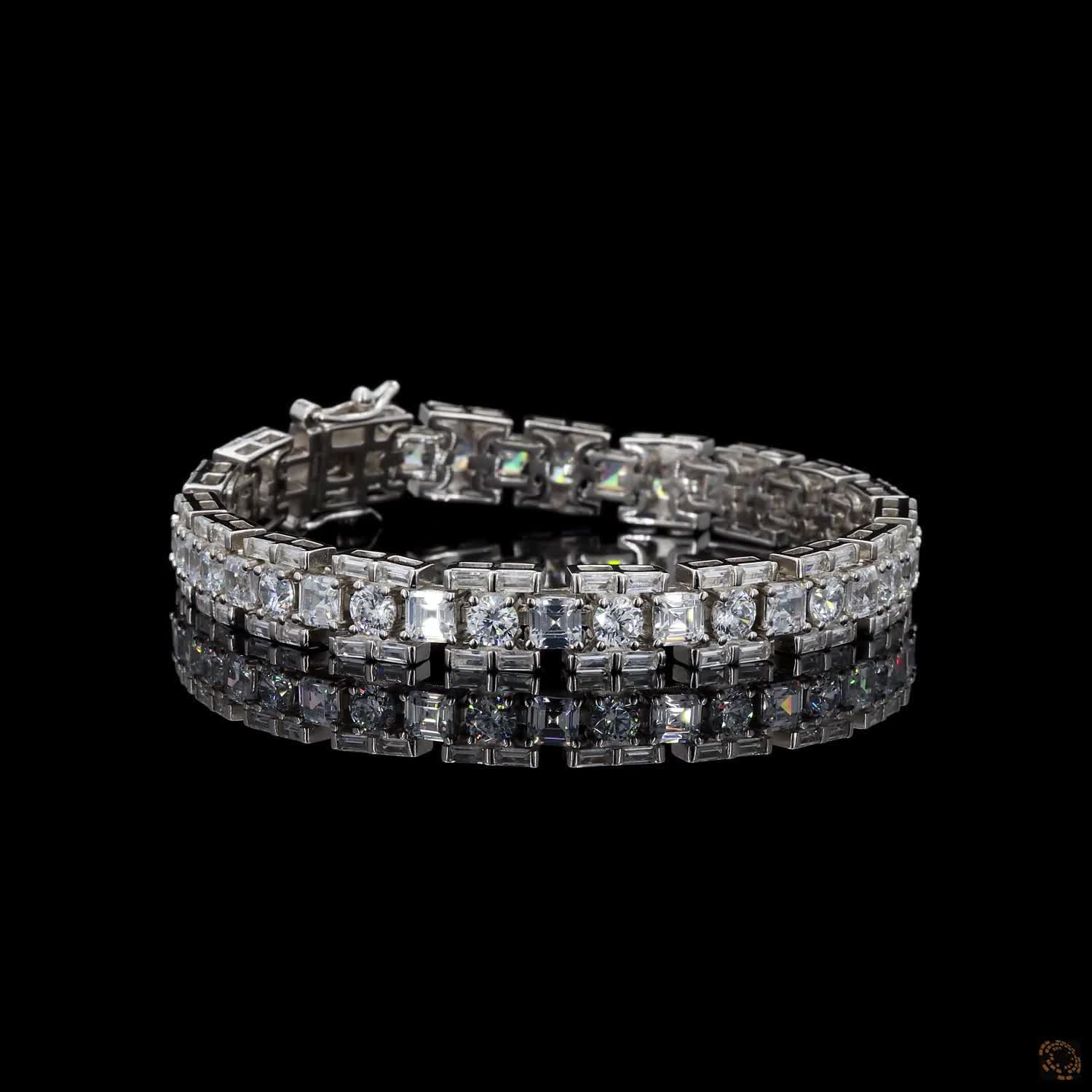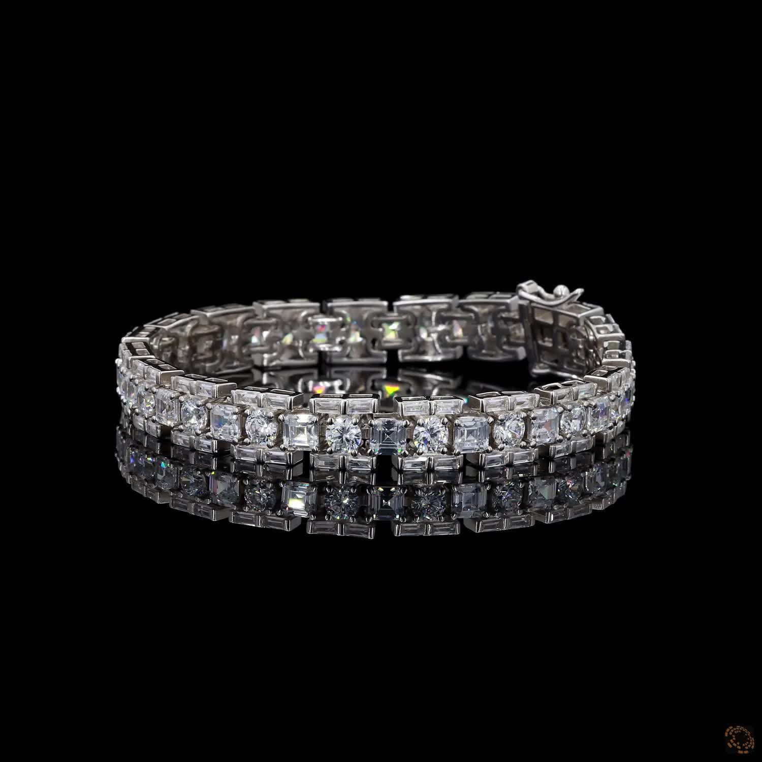 Blanc Cadence flows along the wrist in a seamless sequence of white brilliance, where baguette, cushion, and round stones come together in perfect balance. Each cut plays its part, catching and releasing light in measured intervals, creating movement without excess.