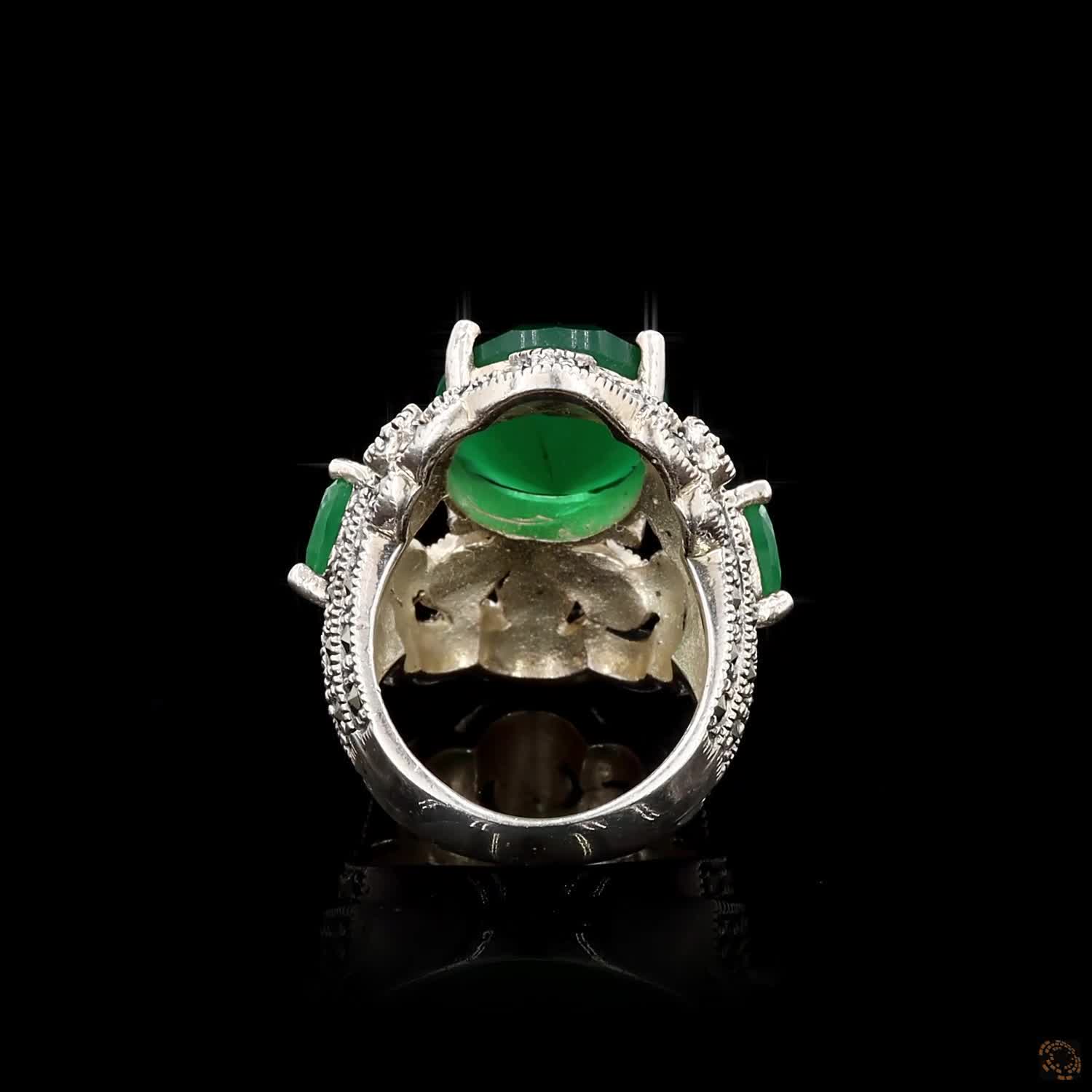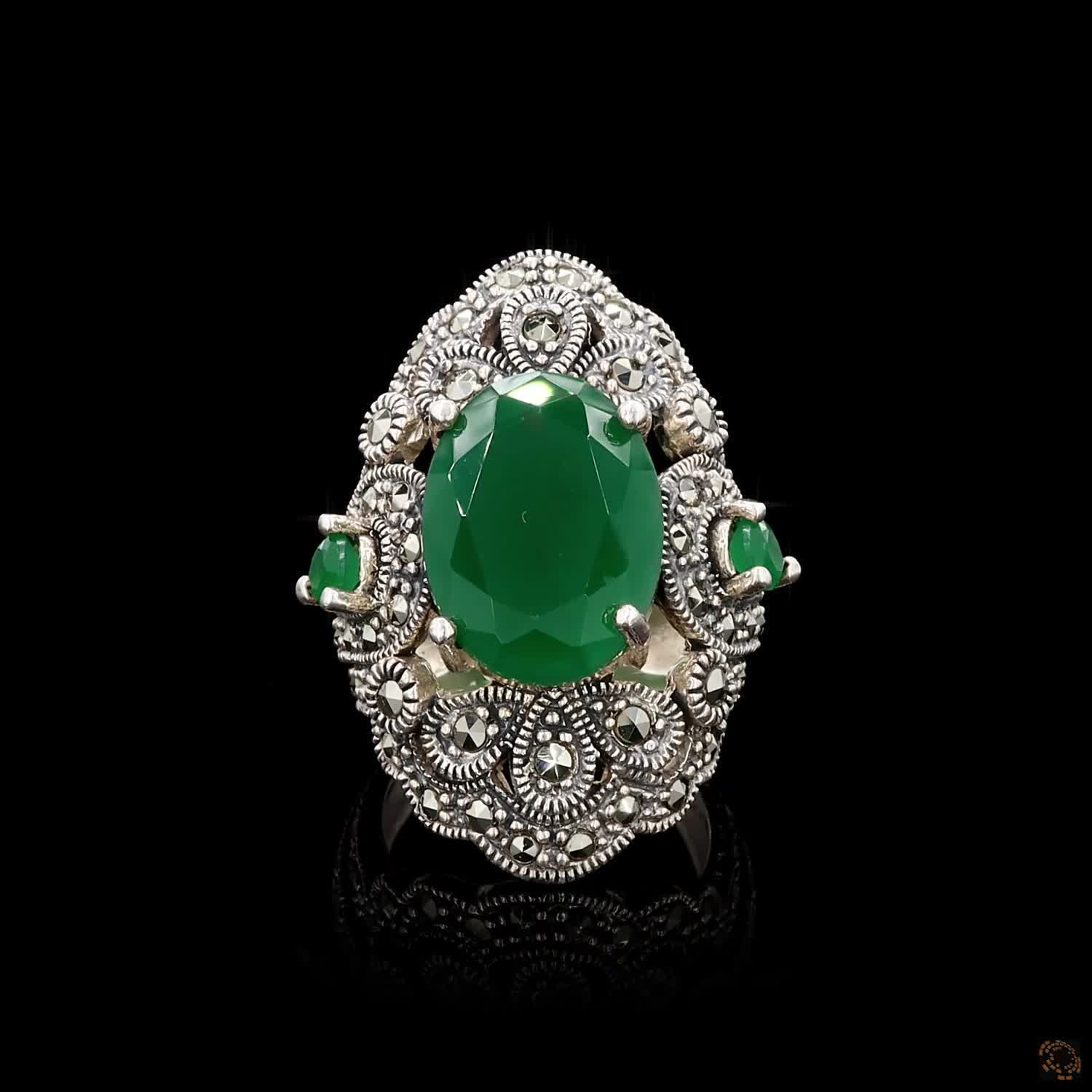 Emerald Afterdark is a bold green cocktail ring accented with marcasite stones, designed for evenings that don’t need introductions. The deep emerald tone brings intensity and richness, while the marcasites add a vintage depth that feels intentional — never flashy.