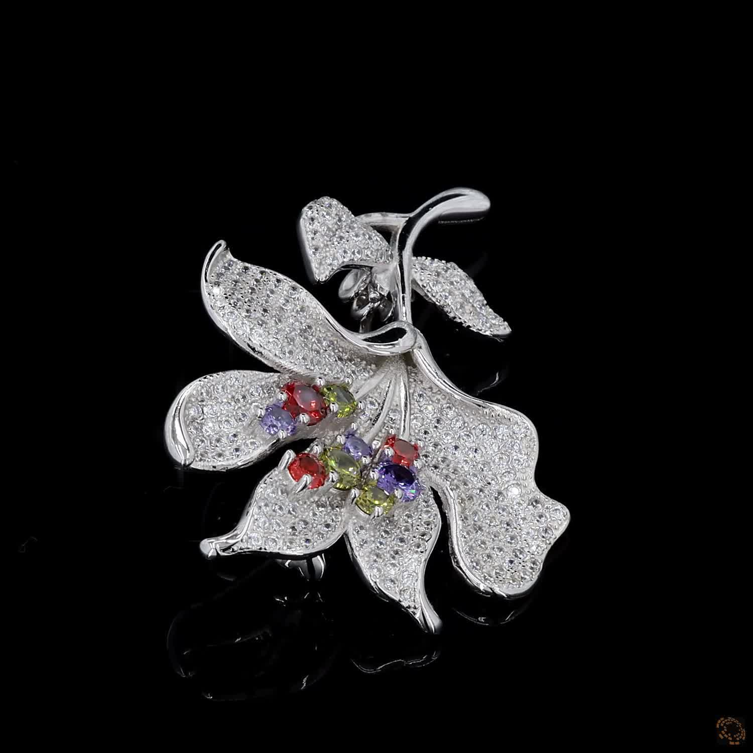 This diamond-encrusted flower brooch is designed to command attention the moment it enters a room. Every petal is layered with brilliant diamonds, punctuated by carefully placed coloured stones that add depth, contrast, and unmistakable drama. It doesn’t sparkle politely — it performs.
