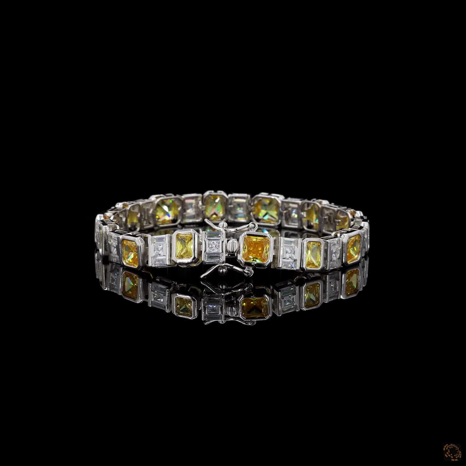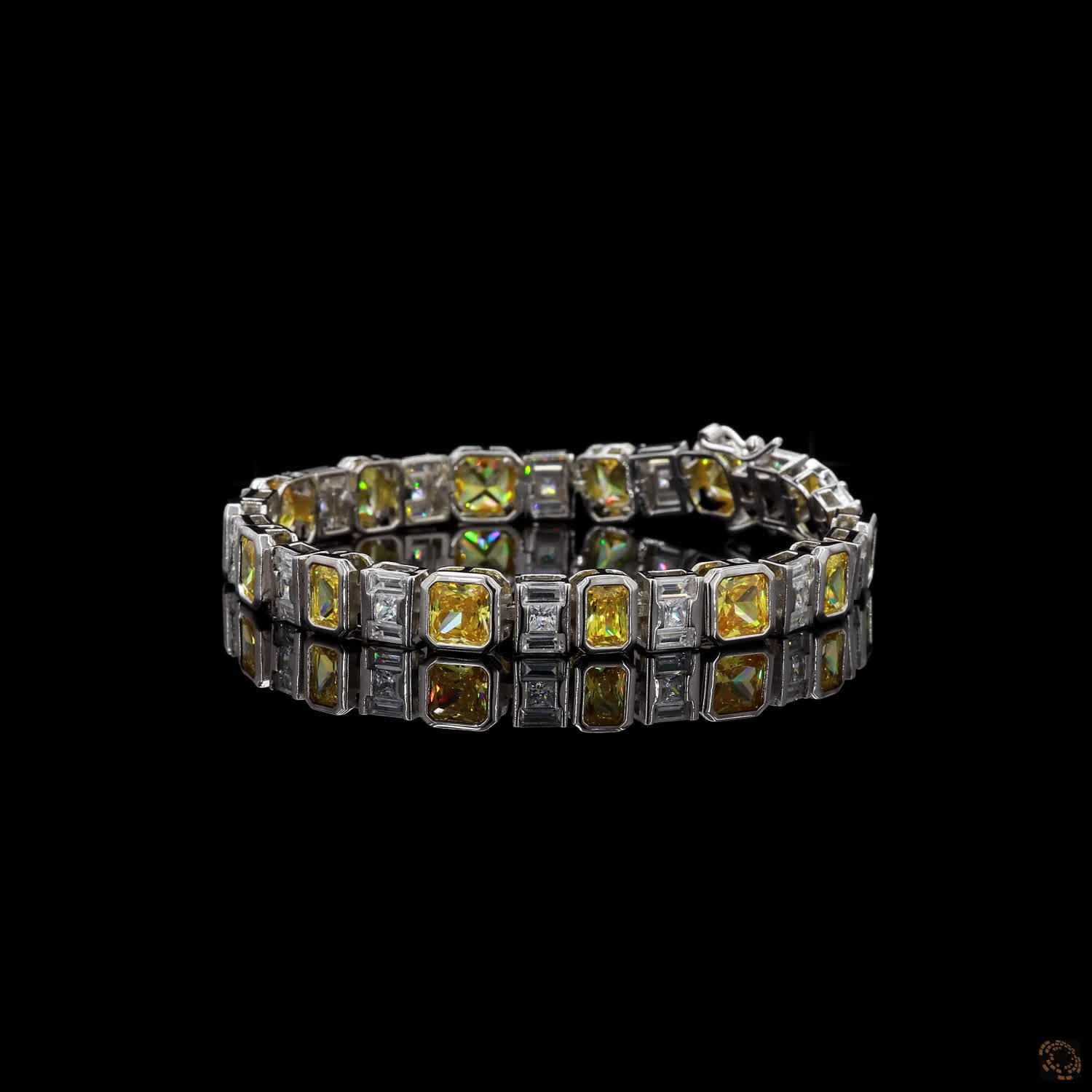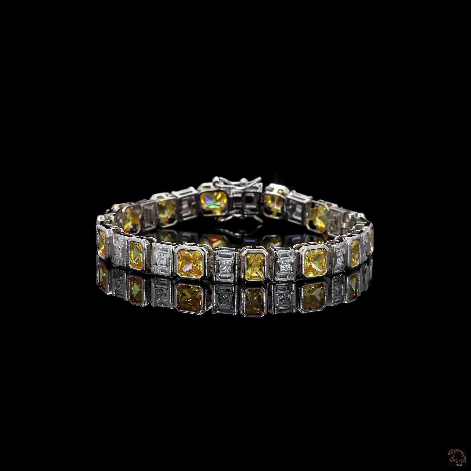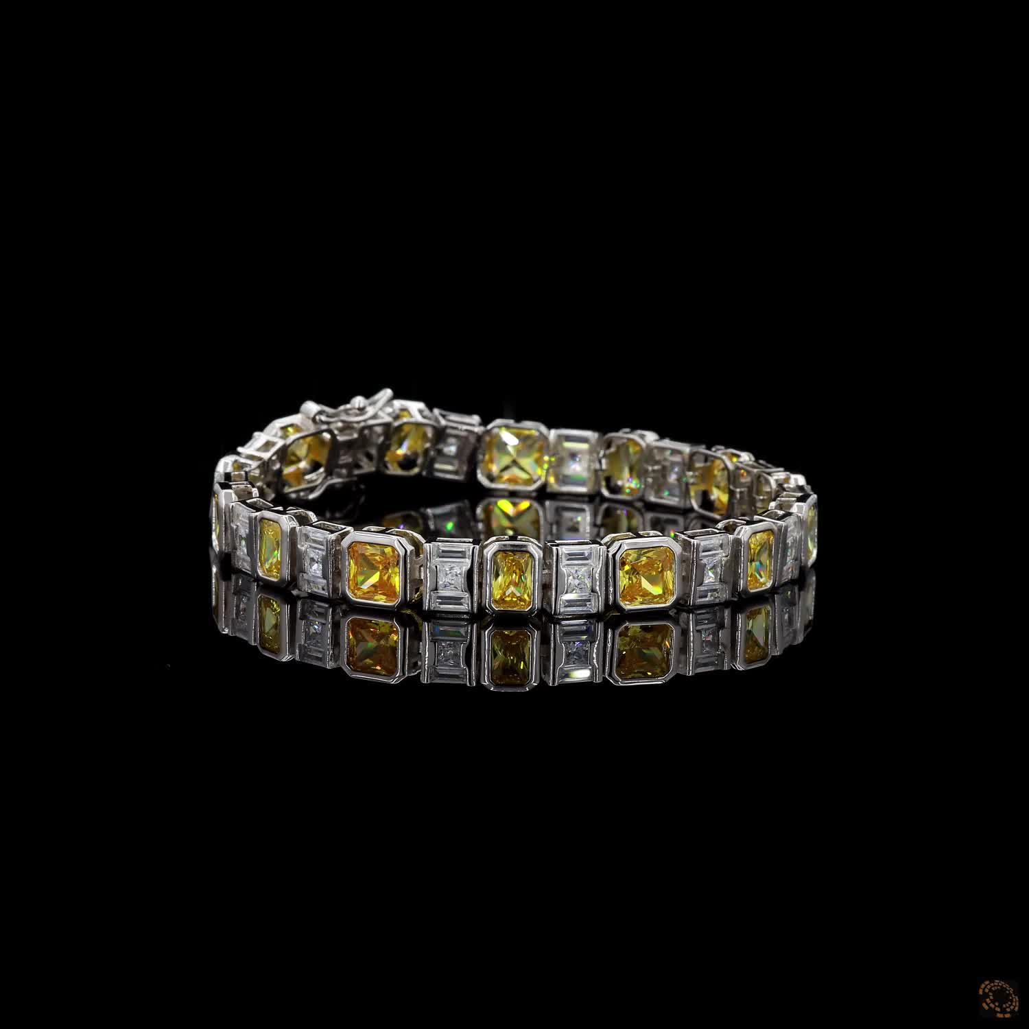 Lumière brings together yellow and white brilliance in a seamless flow of emerald, princess, cushion, and baguette cuts. Each stone is placed with intention, allowing warmth and clarity to meet, separate, and reunite as the bracelet moves along the wrist.
