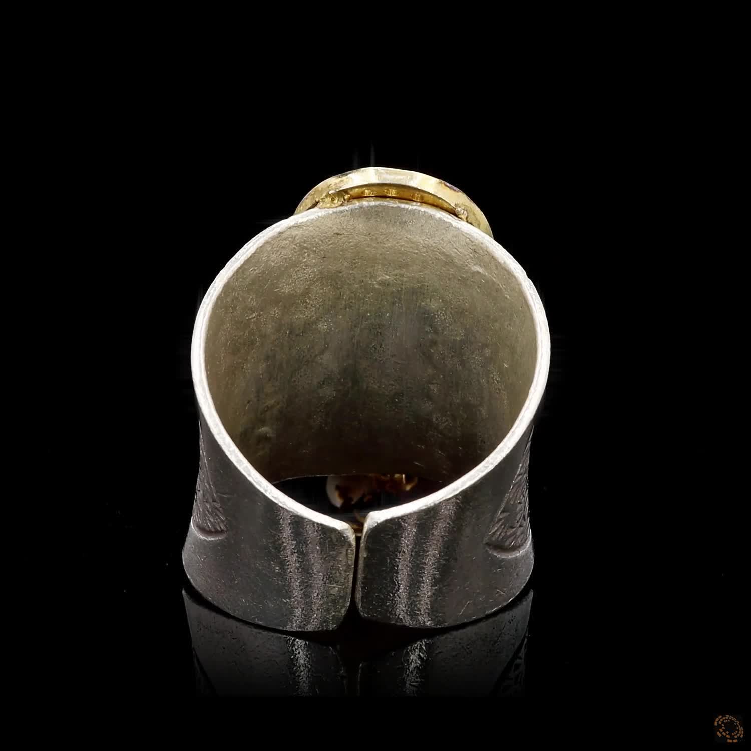 Noor Jhumri is an adjustable Polki ring designed with exquisite danglings that move gently with every gesture. At its centre rests a rich purple stone, adding depth and regal contrast to the warm Polki glow.