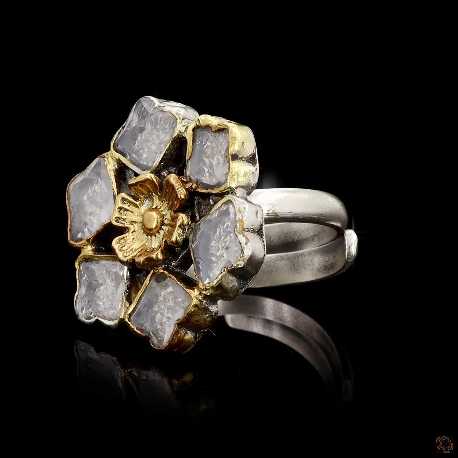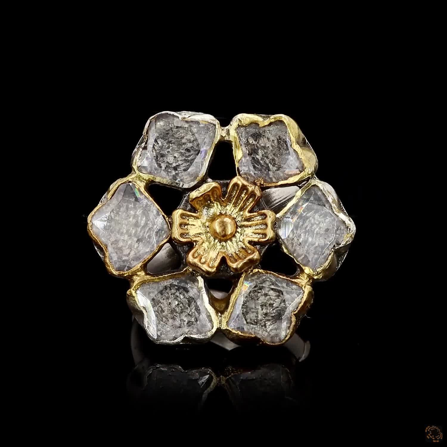 Raj Phool is a Polki flower ring designed to bring a touch of royalty into everyday moments. The floral silhouette softens the structure of Polki, making it elegant, wearable, and naturally striking — without feeling heavy or overdone.