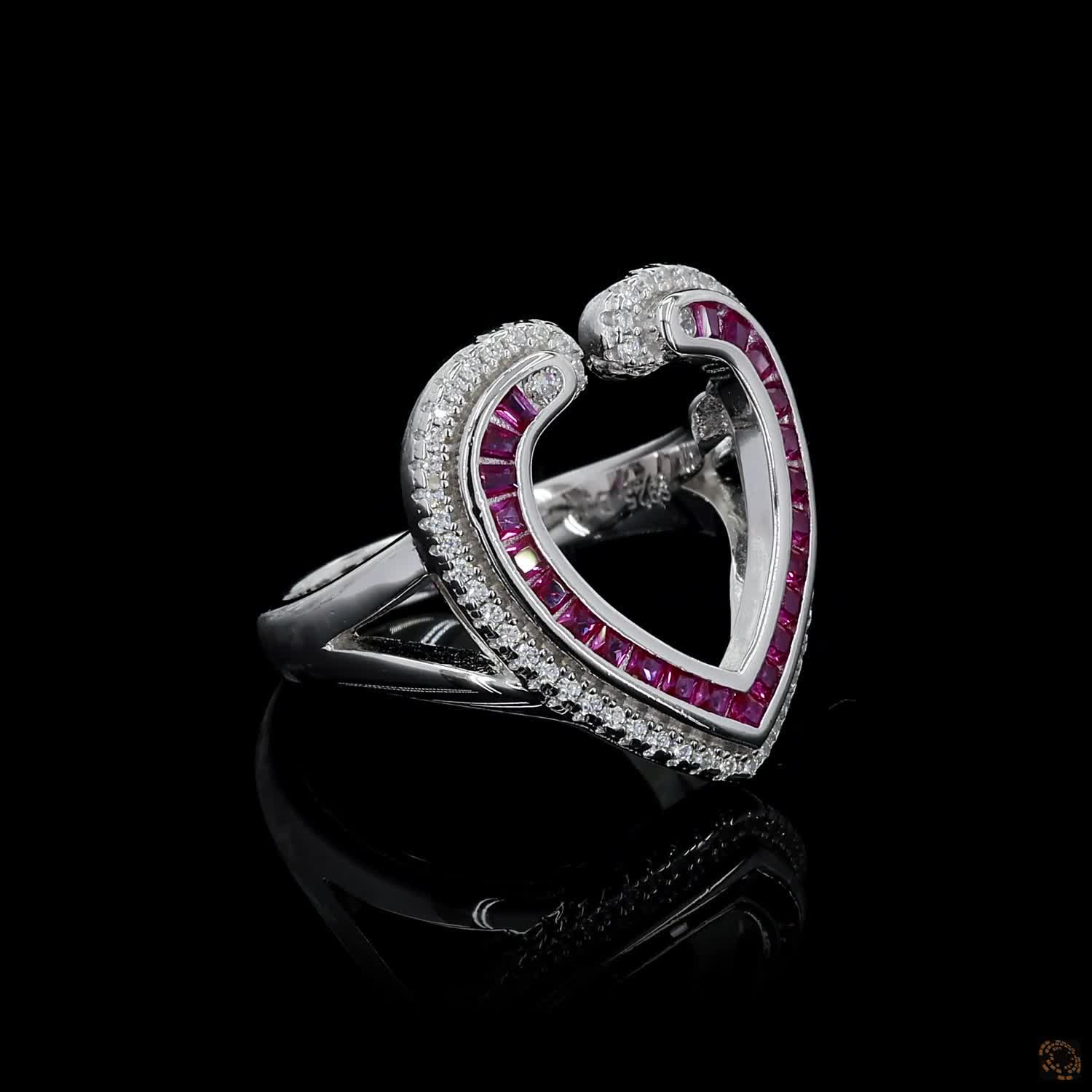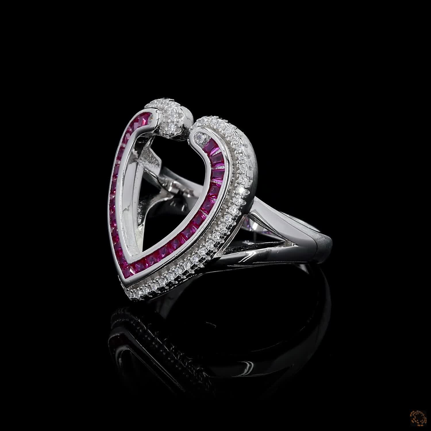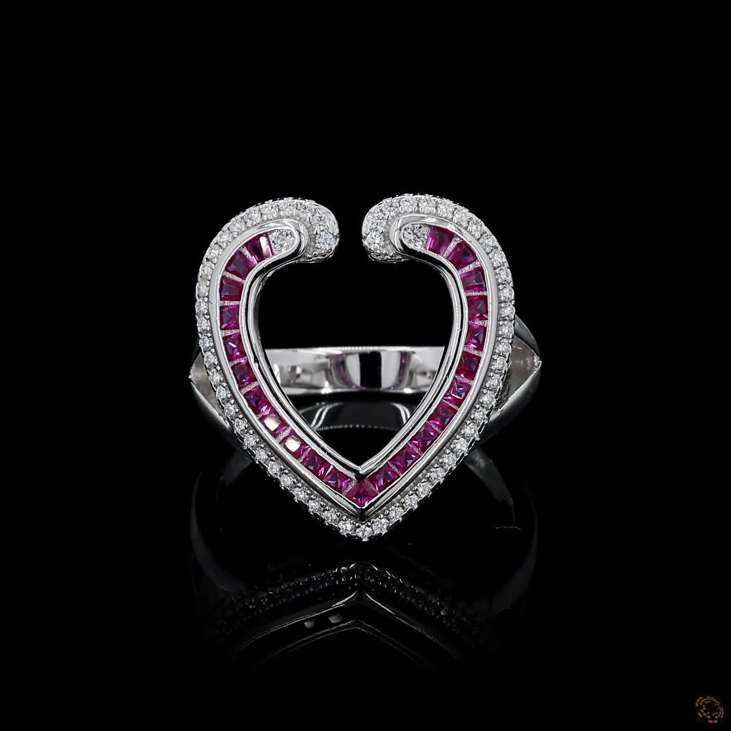 Ruby Whisper features a delicately formed diamond heart, brought to life with subtle pink ruby accents that add warmth and depth without overpowering the design. The heart shape feels intentional, not ornamental — refined, balanced, and quietly expressive.