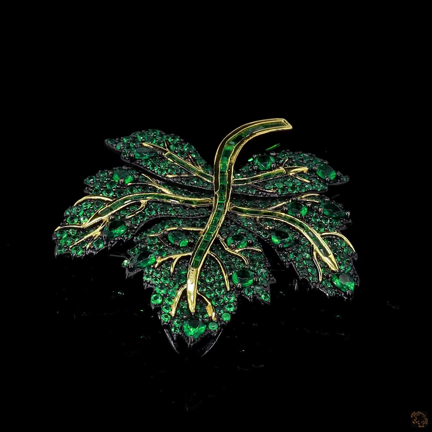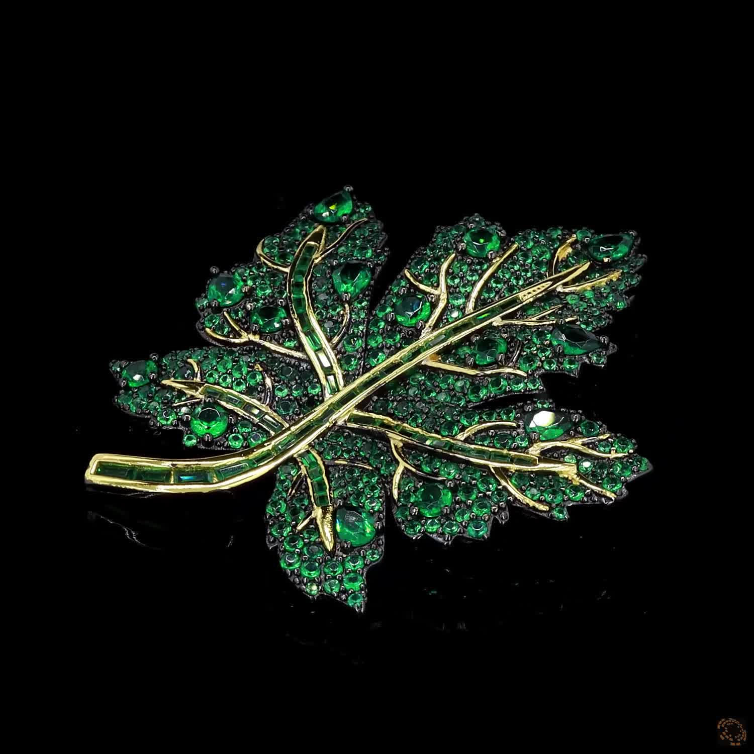 Verte Lumière is sculpted in gold to glow the moment it moves. Its form curves gently, catching light the way sunlight filters through leaves at golden hour. Green diamonds sit within its veins, adding depth, contrast, and an unmistakable pull.